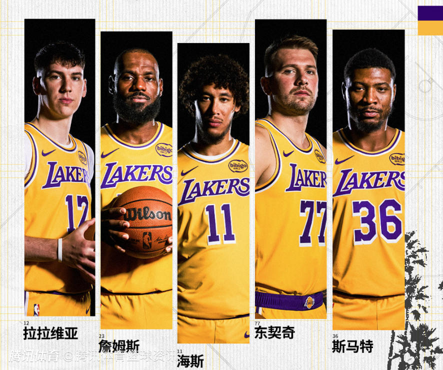 湖人队的首发阵容为:詹姆斯、拉拉维亚、斯马特、海斯、东契奇。这是湖人队本赛季首次使用这套首发阵容,艾顿、八村垒、布朗尼、里夫斯和文森特缺席本场比赛。