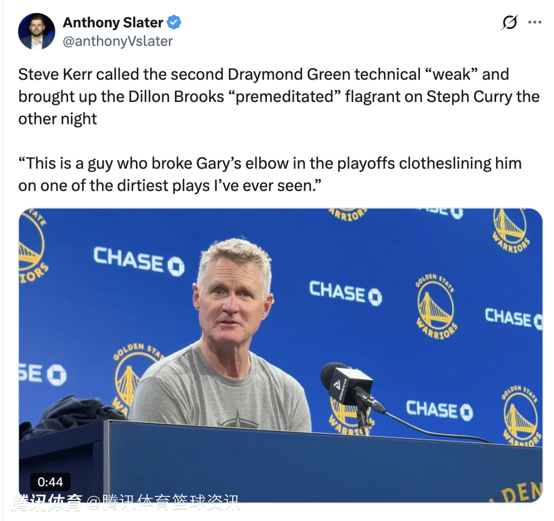科尔:我觉得这个判罚太牵强了。他当时确实冲裁判大喊大叫,吹一个技术犯规没问题。但他转身走向替补席时又说了几句,裁判就直接给了第二个T将他驱逐。这就离谱了!前几天对手球队有个球员,蓄意用拳头击打库里的腹部,这么恶劣的动作居然没被驱逐。结果才过了两天,就因为追梦几句言语,裁判就把他罚出场。我完全无法认同这个判罚,当时气得不行,我自己也因为抗议判罚吃到了技术犯规。