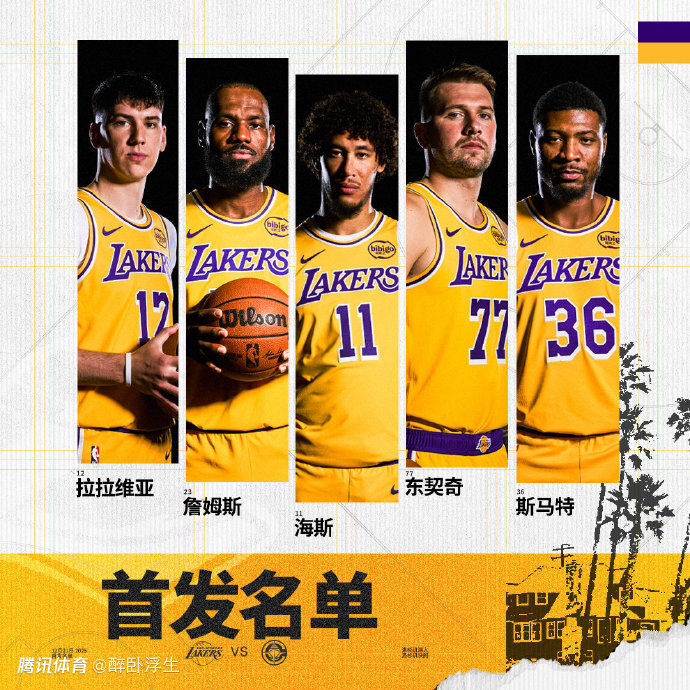 湖人:詹姆斯、东契奇、斯马特、海斯、拉拉维亚