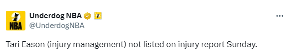 根据球队最新伤病报告显示,此前因腹斜肌伤势连续缺阵14场的伊森,已被移出伤病名单,顺利通过伤病管理评估,确定可以出战本场比赛。