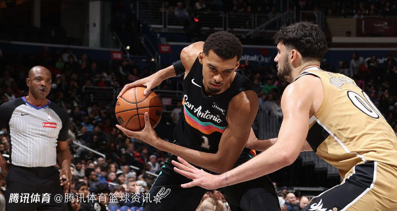 2025-12-22 09:10北京时间12月22日,NBA常规赛继续进行,马刺队对阵奇才队。在首节比赛中,文班亚马在一次跳球中落地时肘击到了裁判的头部。