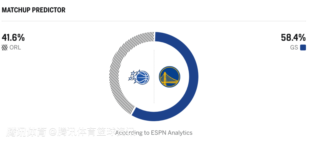 魔术41.6%,勇士58.4%