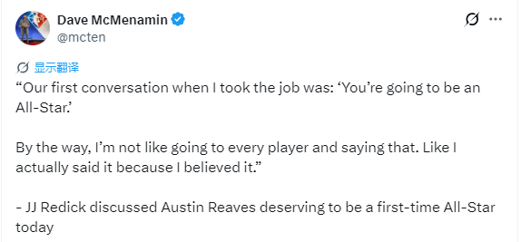 关于里夫斯能否入选全明星的话题,雷迪克说道:“我当时就想到,这对他来说意义重大,非常重大。我和他聊过,能在这个级别、这个位置打球,他自己都觉得很不真实。当然,作为一名运动员,你必须时刻提醒自己,要懂得停下来享受当下。竞争的本质就是如此,尤其是在82场漫长的赛季里,根本没有松懈的余地,反而需要全力以赴。”