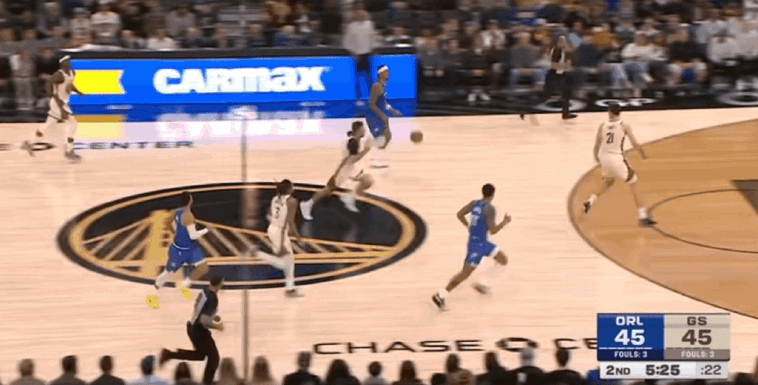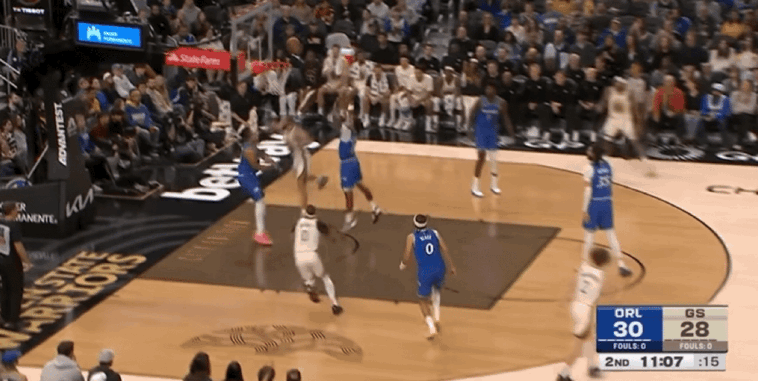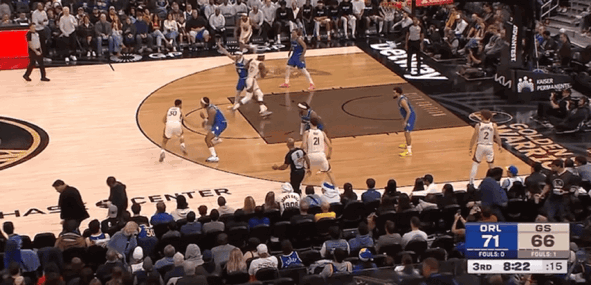 易边再战,库里突破挑篮,班凯罗急停跳投,穆迪跳投回应,卡特中距离投射命中。追梦格林突破得手,贝恩上篮得分,布莱克三分命中,追梦格林挑篮得分。魔术连得5分,库里三分回应,班凯罗空切上篮,双方再次回到交替取分的对攻阶段。库里手感爆发连得8分,班凯罗和布莱克连续冲筐得手,小佩顿空接暴扣,比塔泽2罚全中。巴特勒三分命中,波斯特空切扣篮。三节比赛结束,魔术83-89落后勇士。