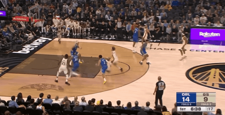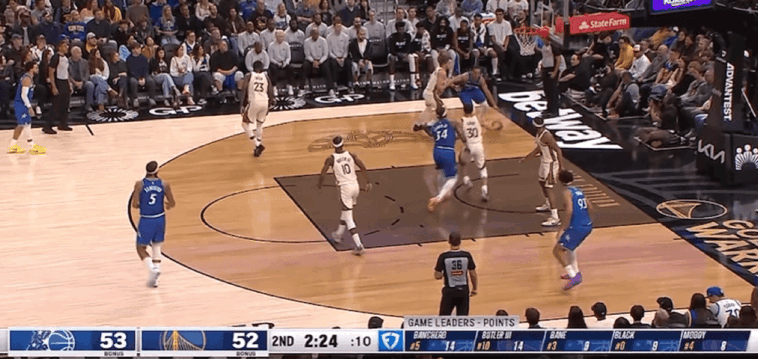 首节比赛开始,追梦格林空切上篮,率先为勇士取得首次运动战进球。班凯罗转身跳投,巴特勒后仰跳投,贝恩和琼斯连续飙进三分,魔术打出8-0的进攻高潮。库里空切上篮,贝恩连得4分,两队进入焦灼对攻阶段交替取分。戴维斯和巴特勒连得5分,理查德森突破的手,波杰姆斯基急停跳投,霍华德挑篮打进。艾萨克2罚1中,梅尔顿突破上篮,彭达压哨补篮打进。首节比赛结束,魔术30-26领先勇士,勇士单节三分10中1。