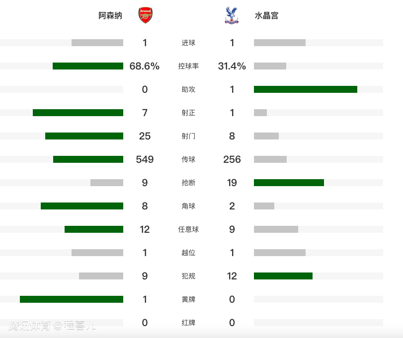 第23分钟,马丁内利再次送出妙传,热苏斯的头球以及马杜埃凯的补射,都被水晶宫门将奋力扑出。