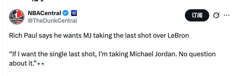 不过,当话题转向比赛最后一攻的出手权时,保罗给出了截然不同的答案。“如果要敲定最后一投的人选,我会选乔丹。这一点,毋庸置疑。”
