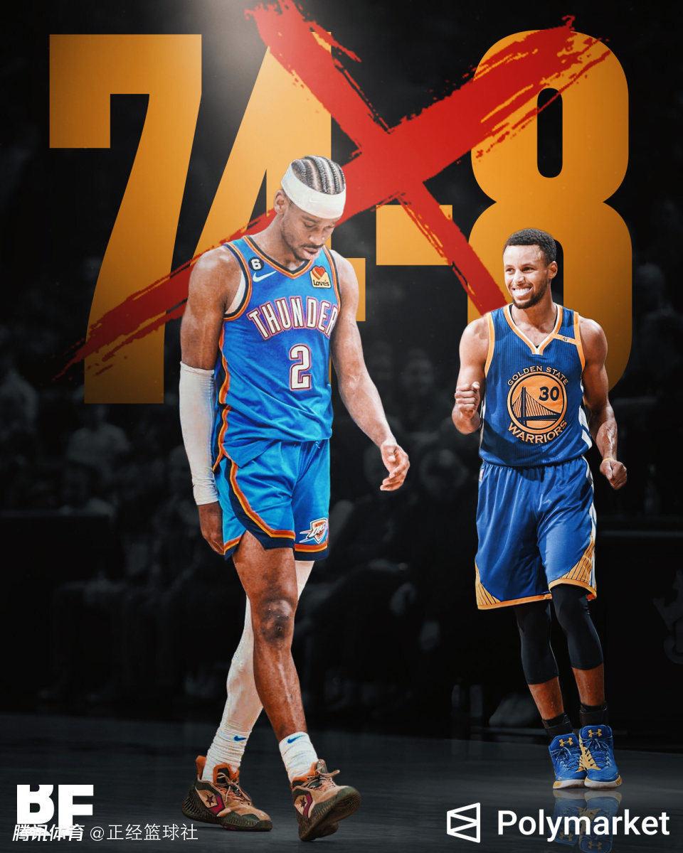雷霆74胜概率仅剩9%!最强阵容迄今竟全败 美媒感慨16年勇士太强