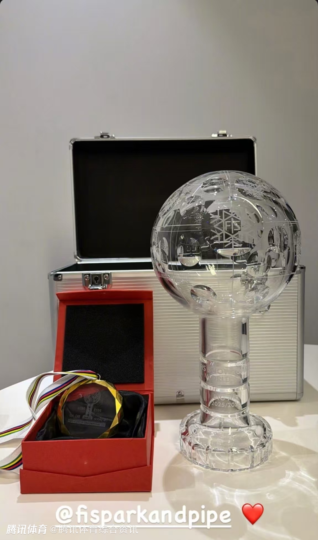 2025-12-25 09:50北京时间12月25日,中国运动员苏翊鸣更新社媒,晒出“水晶球”奖杯。