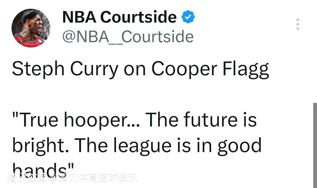 库里:他是个纯粹的篮球斗士,天生的竞争者。你很容易就会忘记他其实还很年轻,他在场上的那种存在感太亮眼了。这孩子前途无量。我很欣慰他能在新秀赛季就拥有这样的大赛体验,亲身感受聚光灯下的比赛氛围。联盟的未来,交到这些年轻人手里,绝对靠谱。