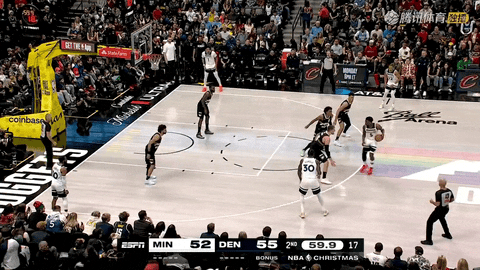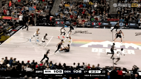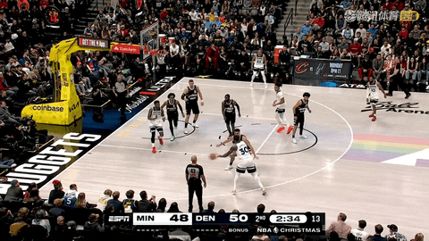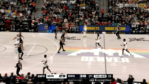 第二节还剩50秒时,兰德尔接爱德华兹分球命中三分,比分变为55-55,但还剩29秒时穆雷急停跳投命中,半场结束森林狼55-57落后掘金。