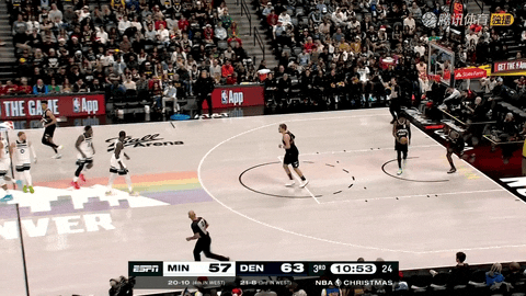 第一节还剩11分56秒时,戈贝尔和约基奇完成跳球。第一节还剩11分10秒时,约基奇接琼斯助攻命中三分,比分变为森林狼0-3落后掘金。