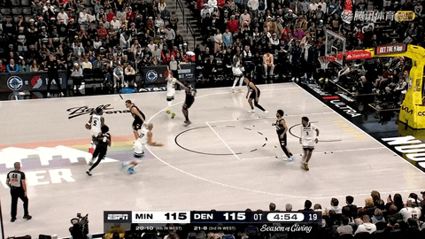 第四节还剩30秒时,爱德华兹三罚全中,比分来到110-113。还剩7秒时,穆雷失误被迪文琴佐抢断,4秒时麦克丹尼尔斯跑动扣篮命中,森林狼追到112-113。还剩3秒时,约基奇两罚全中,将比分改写为112-115;但在节末还剩1秒时,爱德华兹接麦克丹尼尔斯助攻命中三分,将比分追平为115-115,双方进入加时赛。