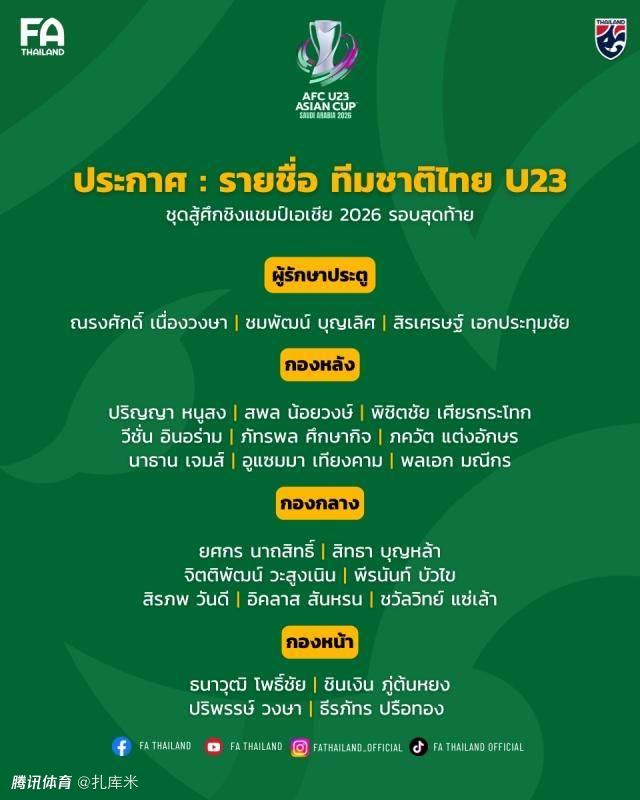 2025-12-26 16:50北京时间12月26日,在U23亚洲杯开赛之前,泰国U23公布了参赛球员名单,球队的8大主力缺席,组成了一套03-04以及05-06年龄段混编的球队。