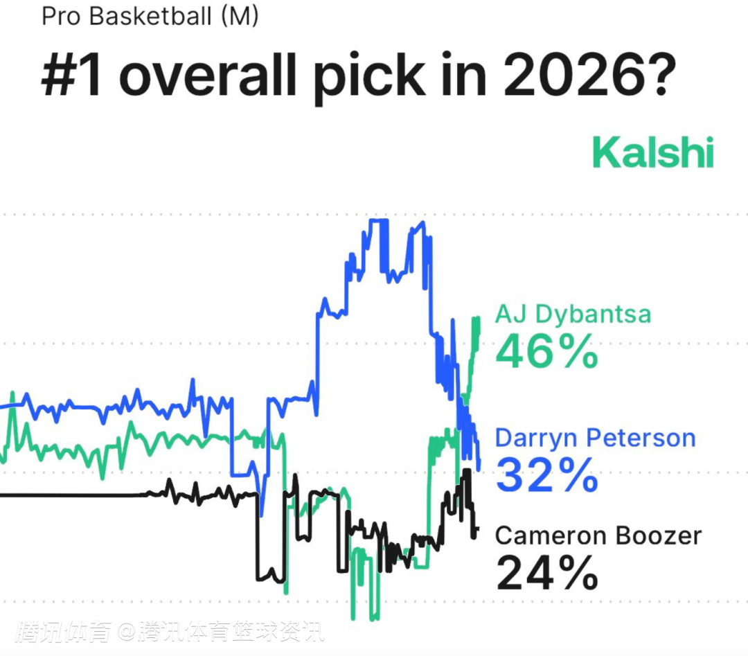 2025-12-27 00:40北京时间12月27日,据美记Evan Sidery报道,KalshiSports数据显示,AJ-迪班萨目前已成为2026年NBA状元郎的最大热门。