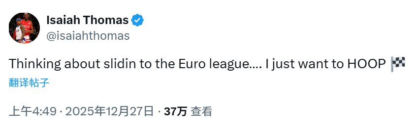 托马斯透露自己渴望继续打球,哪怕是只能转战欧洲赛场。他在社媒上写道:“正考虑去欧洲联赛闯荡……我只想继续打球。”