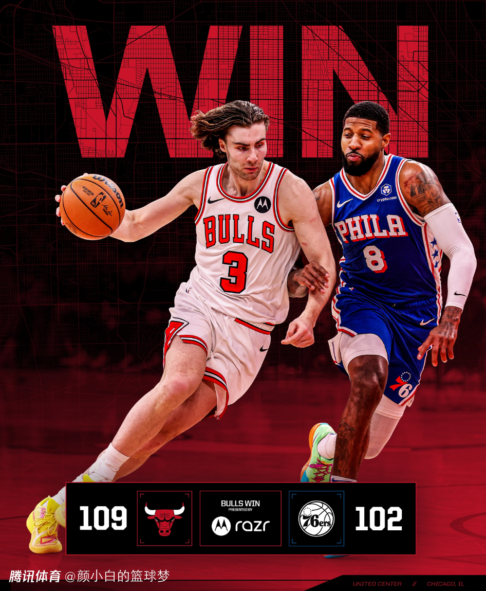 最为惨烈的地方,费城三巨头合体时费城76人本赛季是4负0胜:马克西、恩比德、乔治都在时费城居然一场胜利都没有。公牛则拿到五连胜他们的胜率也再度升至五成。