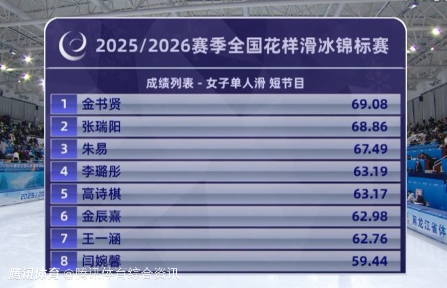2025-12-27 17:00北京时间12月27日,2025-2026赛季全国花样滑冰锦标赛女单短节目落下帷幕,金书贤69.08分摘得头名,张瑞阳68.86分排名第二,朱易67.49分获得第三。12月28日,选手们将迎来自由滑的终极对决,决出女子单人滑最终名次。按照选拔办法,中国杯和全锦赛两场成绩总和最高者获得奥运会名额。