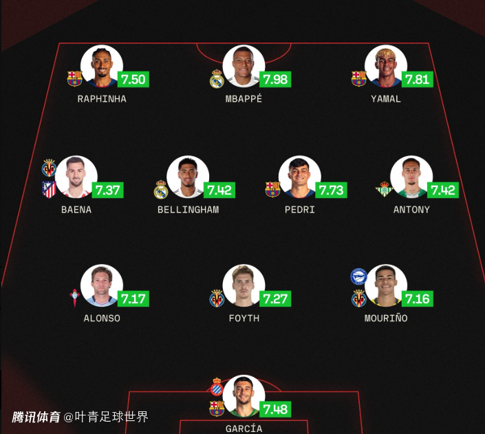 2025-12-27 19:402025年的西甲赛事,已经全部结束。哪些球员给你留下深刻印象?12月27日,著名数据机构sofascore,评选出2025年西甲最佳阵容。姆巴佩、亚马尔、拉菲尼亚、佩德里、贝林厄姆悉数上榜。