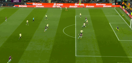 第25分钟,伯恩利左路弧线球传中,布罗亚后点力压后卫头球攻门顶高。