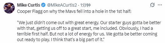2025-12-28 10:00北京时间12月28日,NBA常规赛继续进行,独行侠队107-113不敌国王队。独行侠队球员库珀-弗拉格此役得到23分6篮板5助攻,赛后他接受媒体采访。