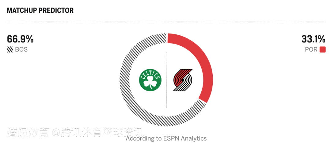 凯尔特人66.9%,开拓者33.1%