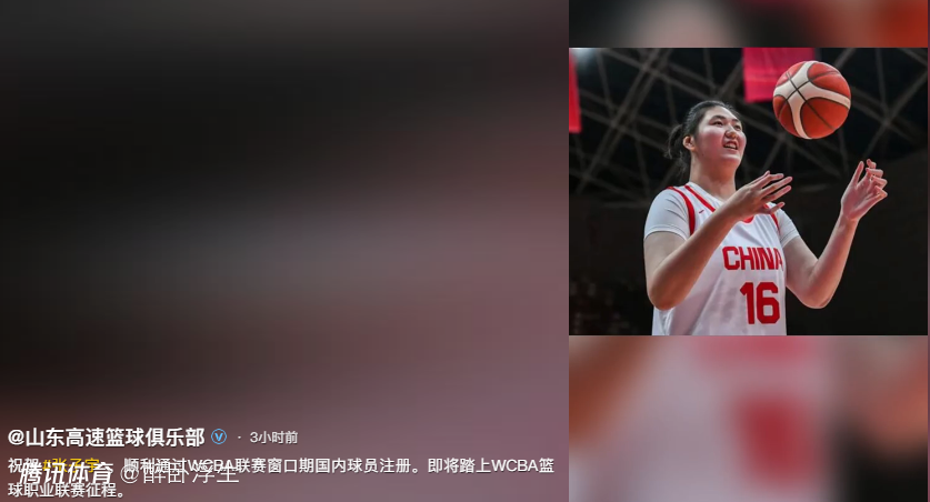 山东高速官宣:张子宇通过窗口期注册 最快1月4日迎WCBA首秀
