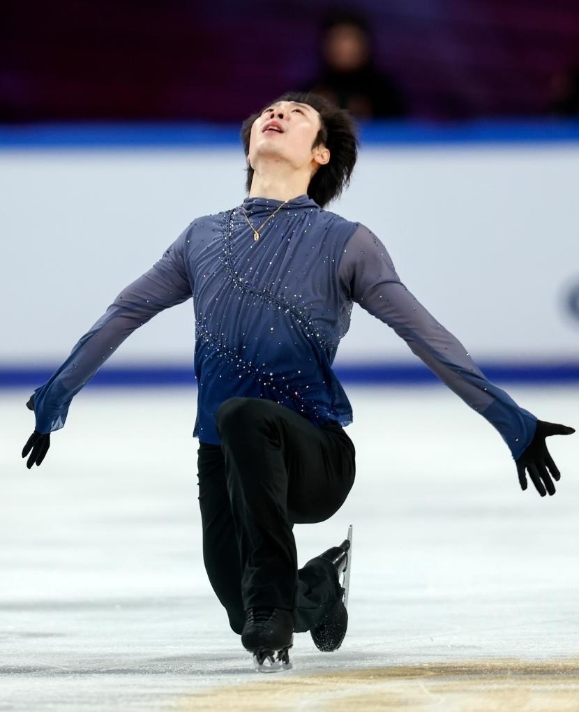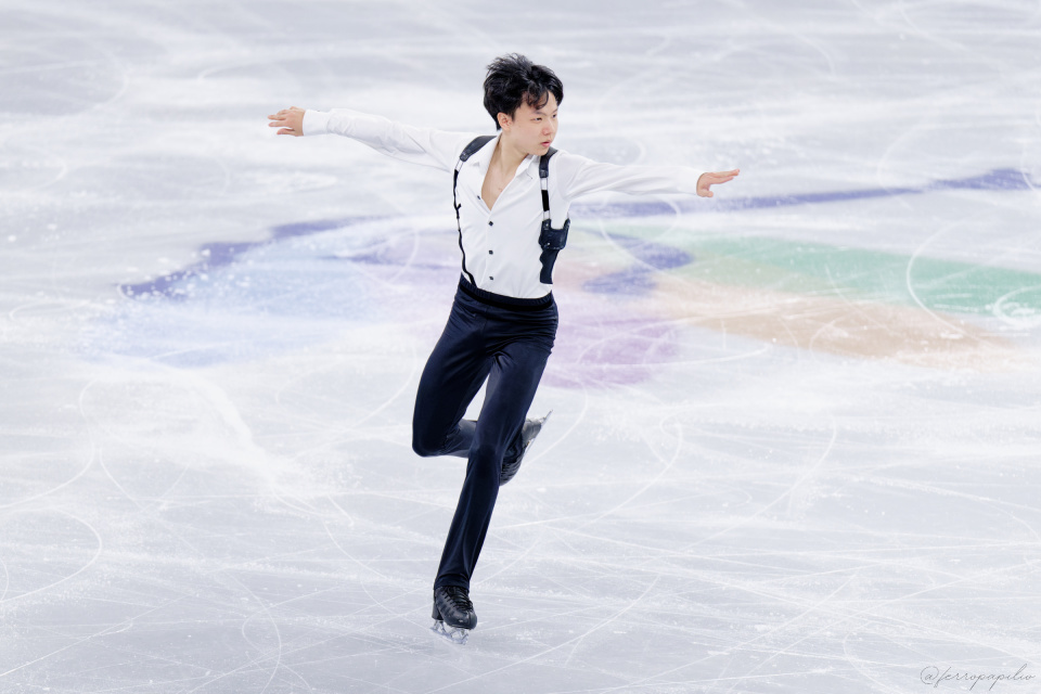 进入慢板,完成了包括接续步、勾手三连跳在内的另外几组跳跃,编排步伐前重回快板,这时候他的体力有点跟不上。技术94.57/节目内容83.75,自由滑178.32,总分256.43完赛。