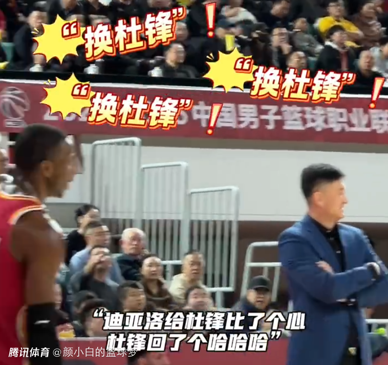 这场比赛杜锋指导来到山西主场,球迷们也没有放过他,多次高呼换杜锋、换杜锋。迪亚洛还朝着杜锋比了一个心,杜锋回应了迪亚洛一个哈哈哈大笑。