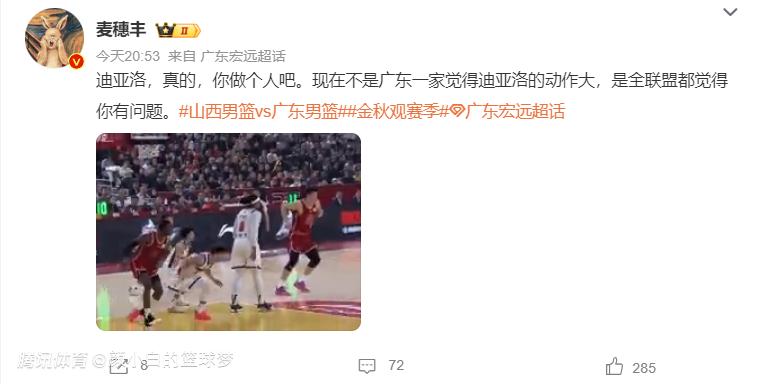 麦穗丰:迪亚洛做个人吧,现在不只是广东觉得他动作大,是整个联盟都觉得你有问题。
