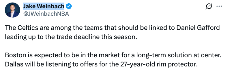 补强内线!凯尔特人预计将追求加福德 独行侠会听取其相关报价