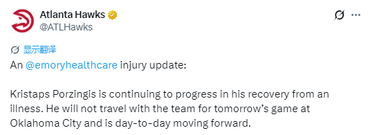 2025-12-29 06:00北京时间12月29日,尽管老鹰队中锋波尔津吉斯将继续缺席球队对阵雷霆的比赛,但他的复出之日已近在眼前。据球队官方消息,波尔津吉斯正从疾病中逐步恢复,目前已被列入每日观察名单。