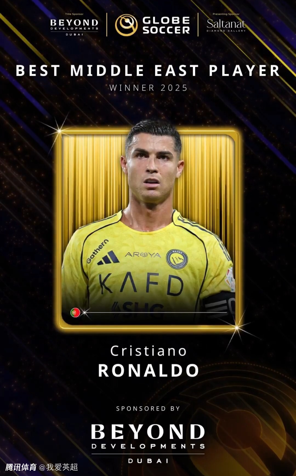 连续3年获最佳中东球员!40岁C罗霸气致辞:最爱环足奖+渴望拿更多