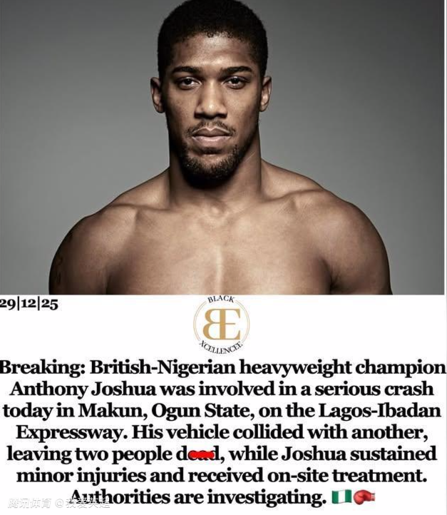 2025-12-29 21:20北京时间12月29日,来自多家非洲媒体的突发报道,36岁的前重量级拳王安东尼-约书亚,在非洲尼日利亚遭遇严重车祸,事故共造成2人死亡,而约书亚本人坐在后排幸免于难,只是受了轻伤。