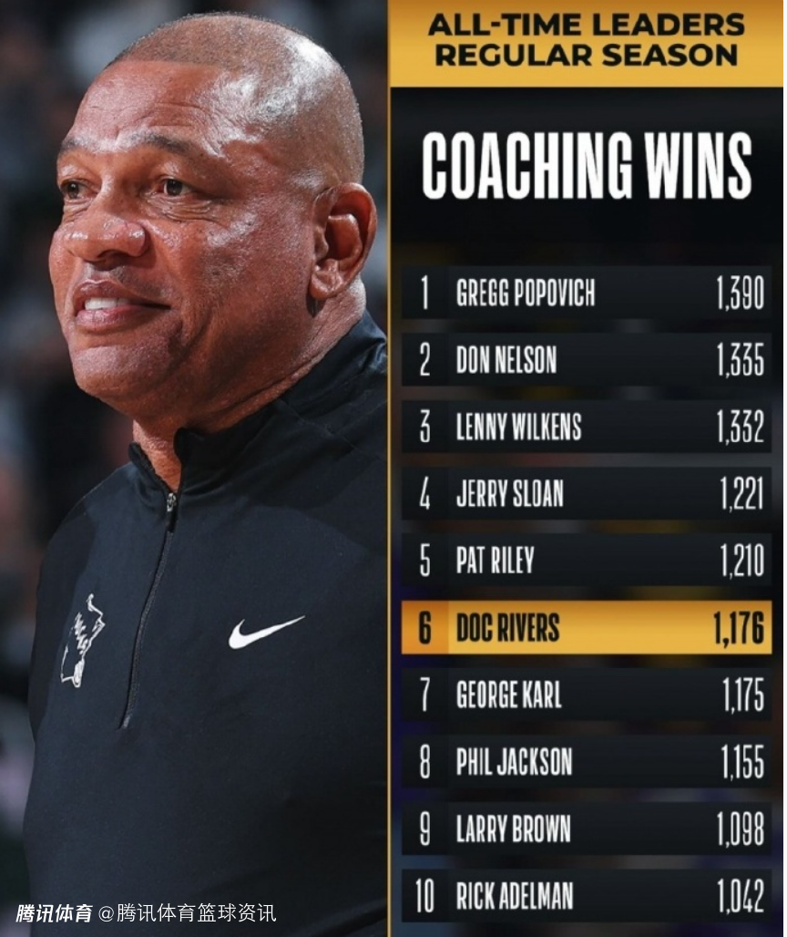 里程碑!里弗斯执教胜场数超越卡尔 升至历史第六位
