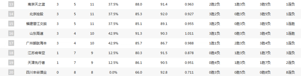 值得一提的是四川男篮成为目前唯一尚未取得比赛胜利的球队,战绩为0胜8负,排在积分榜倒数第一。