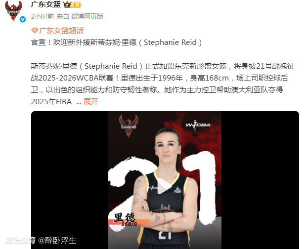 2025-12-31 13:40北京时间12月31日,WCBA卫冕冠军广东女篮官宣,澳大利亚女篮在亚洲杯夺冠的核心控卫斯蒂芬妮-里德正式加盟。只有1.68米的里德今夏入选亚洲杯最佳阵容,她将提升广东女篮的整体竞争力。