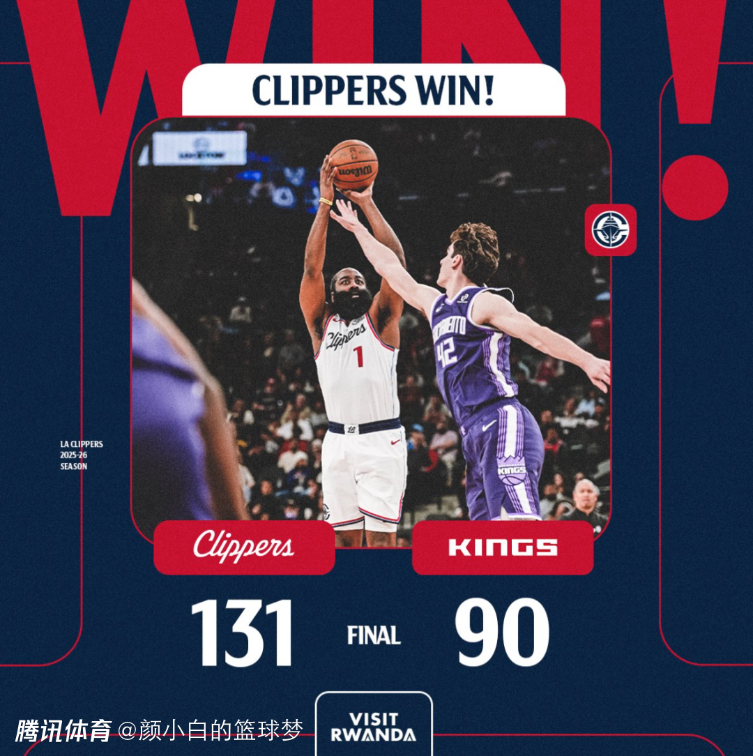 2025-12-31 15:00北京时间12月31日,快船以131-90大胜国王拿到五连胜,此役后快船距离西部第十的开拓者只剩下2.5个胜场。这是一场一边倒的比赛首节快船就领先14分,半场打完快船已经领先到33分,整个下半场都是垃圾时间。