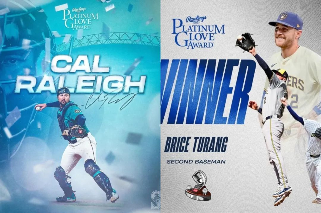 2024赛季获奖者:西雅图水手捕手卡尔-罗利(Cal Raleigh)和密尔沃基酿酒人二垒手布莱斯-图兰(Brice Turang)分别获得美联和国联的白金手套奖(具体内容详见文章)。