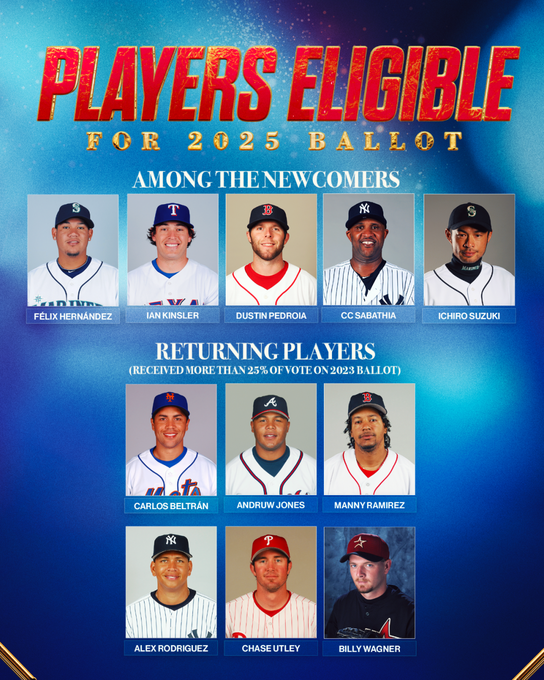 明年的名人堂候选名单已经公布,其中包括第一次进入候选名单的铃木一朗(Ichiro Suzuki)和CC-沙巴西亚(C.C. Sabathia)。