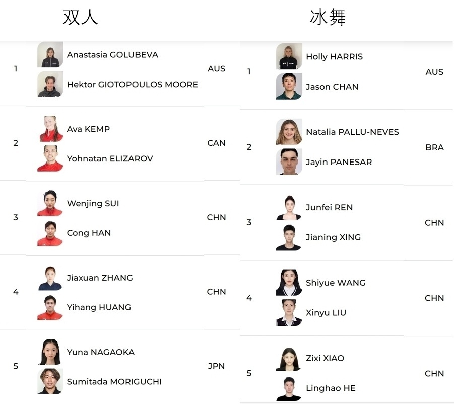 四大洲中国双人/冰舞阵容