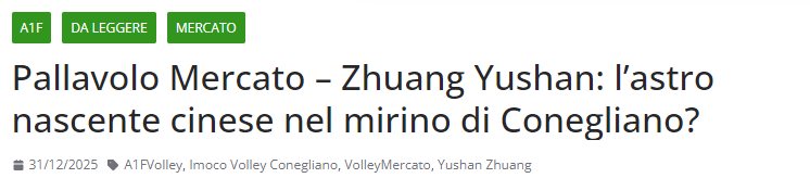 文章表示,这家威尼托俱乐部正密切关注2003年出生的主攻手庄宇珊,她近期刚加盟意大利圣乔瓦尼队。这位四月将满23岁的球员对意甲而言并非新面孔,她曾在2024年身披库内奥队战袍(实际未加盟)。