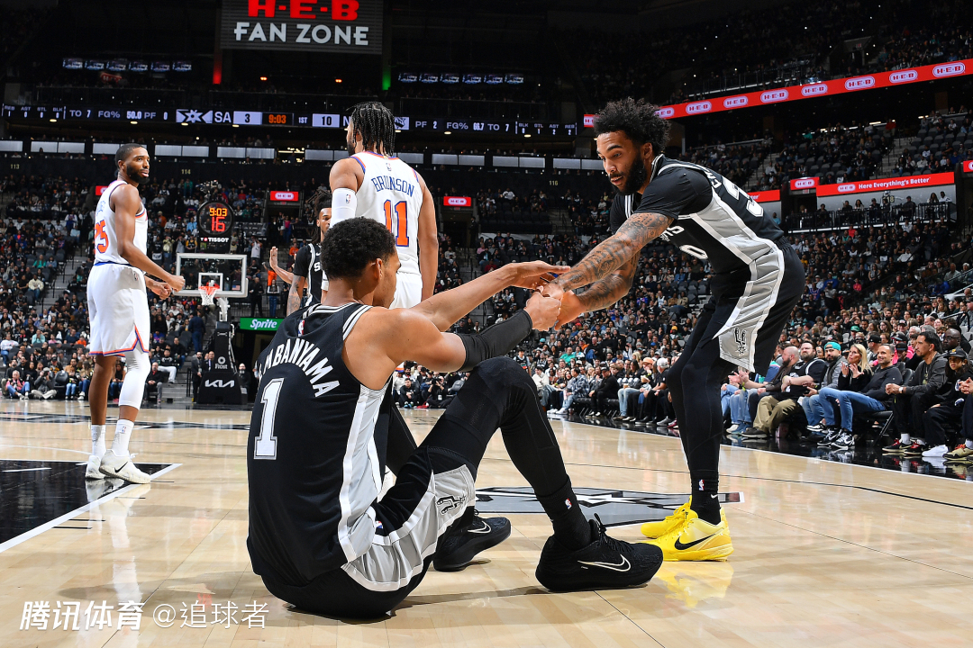 上半场,文班登场16分钟,9投7中狂砍22分9篮板;下半场,第三节马刺继续追分并且一度反超2分,可这一节最后2分钟,没有文班的马刺被尼克斯打出11-0攻势,三节打完马刺93-102暂时落后9分;末节马刺继续抵抗,可打着打着场上出现伤病,文班亚马意外受伤离场。