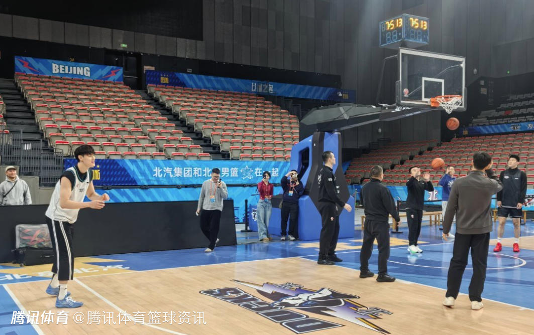 曾凡博参加了北京男篮赛前的投篮训练,他也在底角一度连续投中三分球。