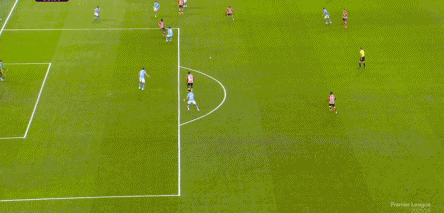 第34分钟,曼城后场出错,马延达拿球摆脱防守兜射,被挡出底线。