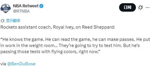 2026-01-02 06:30北京时间1月2日,火箭助教艾维在接受采访时,谈及队内球员谢泼德本赛季的表现。