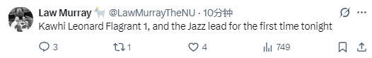 2026-01-02 13:20北京时间1月2日,NBA常规赛继续进行,快船队对阵爵士队。本场比赛进行到第三节,莱昂纳德吃到了一级恶意犯规,而爵士队也利用3罚1掷的机会反超比分,本场比赛首次取得领先。