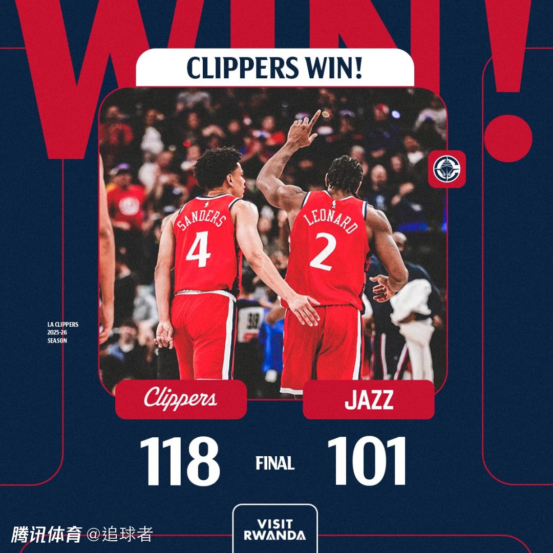 第二节快船被爵士打出11-4攻势,小卡连得5分稳住局面,之后爵士继续强势反扑,快船单节22-33被爵士追回11分,半场打完快船的两位数领先仅仅只剩3分;易边再战,第三节快船29-31又被追回2分,末节小卡化身战神接管比赛,连中4记三分以及连秀招牌中投,单节爆砍20分带队一波流带走比赛,最终快船稳稳拿下胜利。