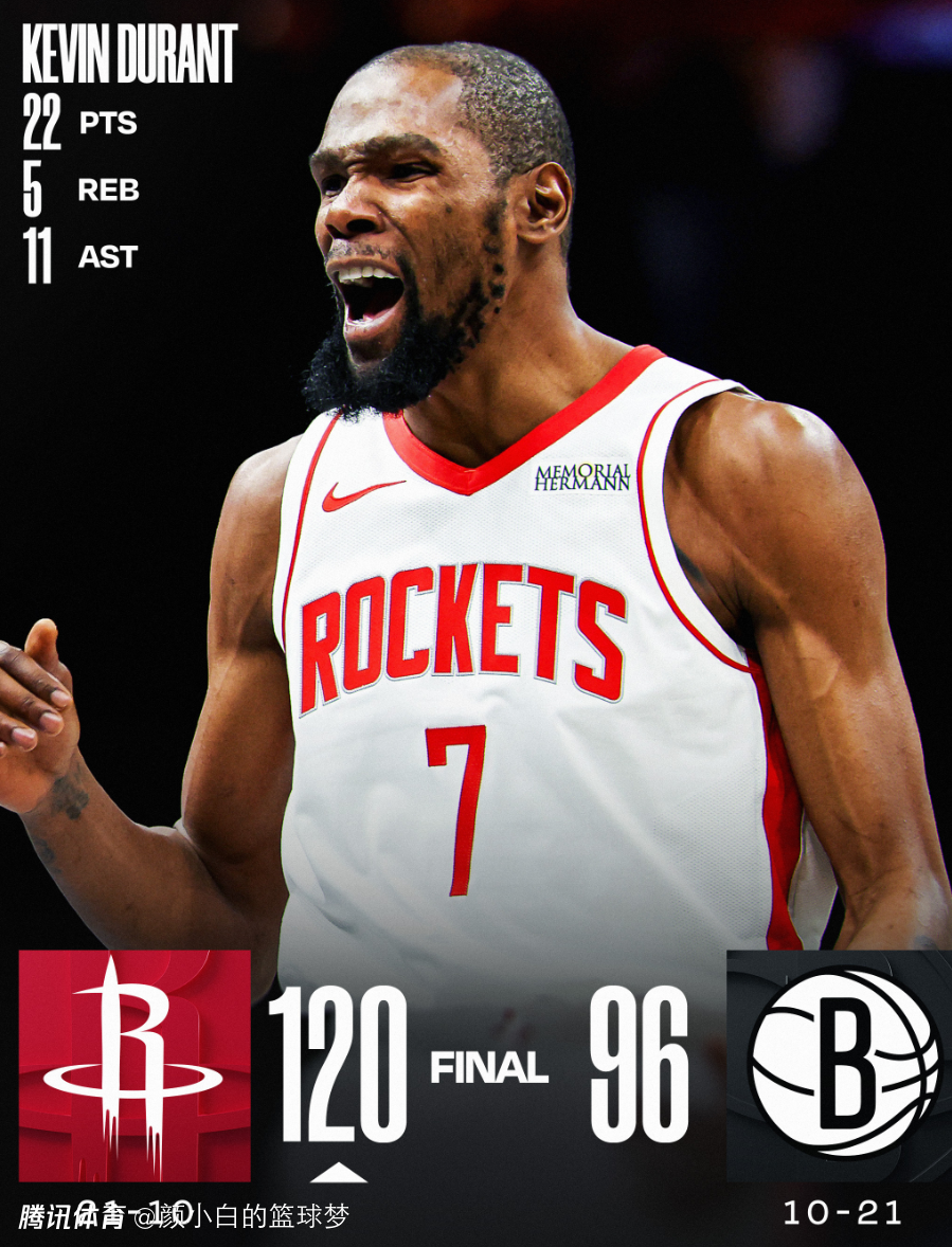 2026-01-02 23:00北京时间1月2日,火箭120-96大胜篮网拿到四连胜,火箭稳住了他们西部上半区的席位,火箭距离西部第三的掘金只剩下1个胜场,而且掘金的替补中锋瓦兰也伤了,火箭重返西部第三似乎已经是板上钉钉,杜兰特的竞技状态一如既往的稳定。