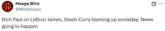 詹姆斯和库里曾联手代表美国男篮征战巴黎奥运会并且夺得金牌,也曾在全明星的舞台上联手过,但他们从未成为NBA队友;目前41岁的詹姆斯正为湖人效力,他拥有交易否决权。